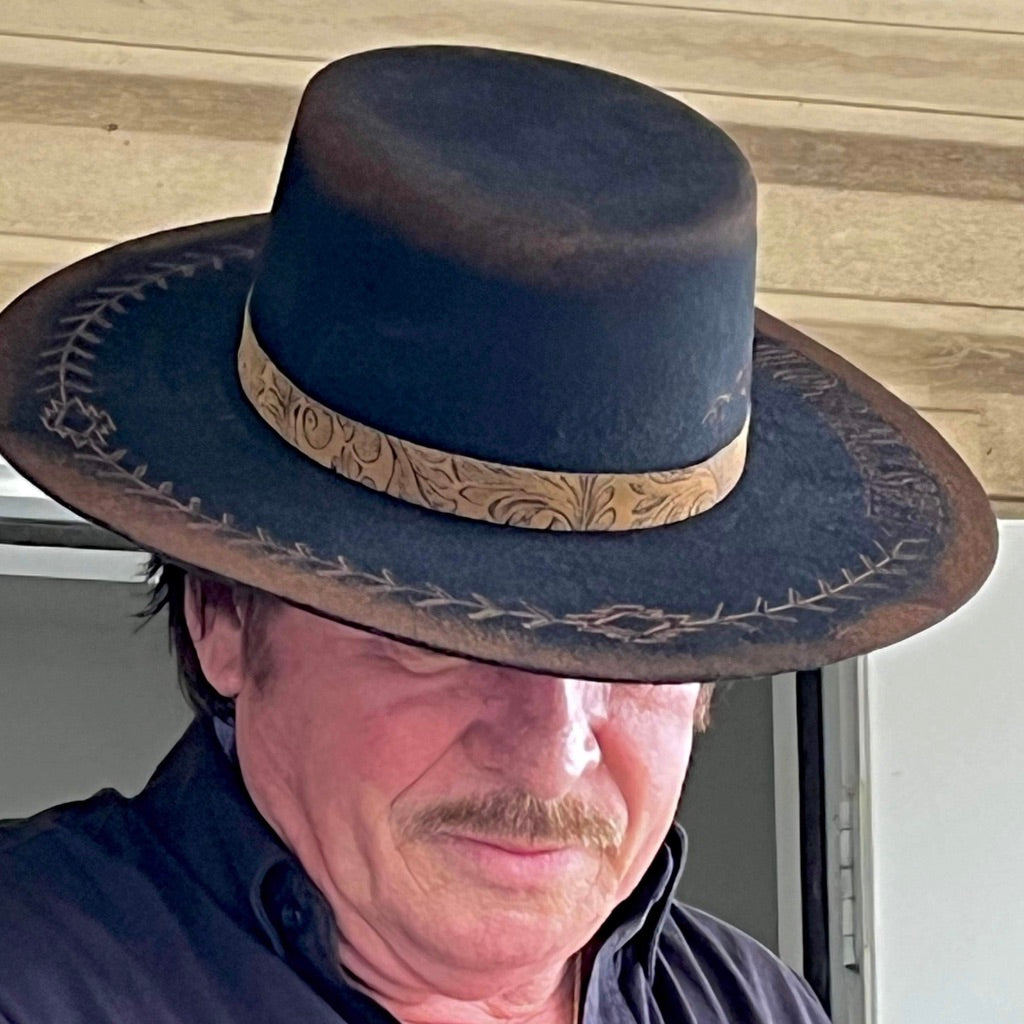 The owner of this hat is a huge Clint Eastwood fan and wanted to commemorate the High Plains Drifter look with this custom black bolero style hat. Hat features an adjustable sweatband so one size fits most.